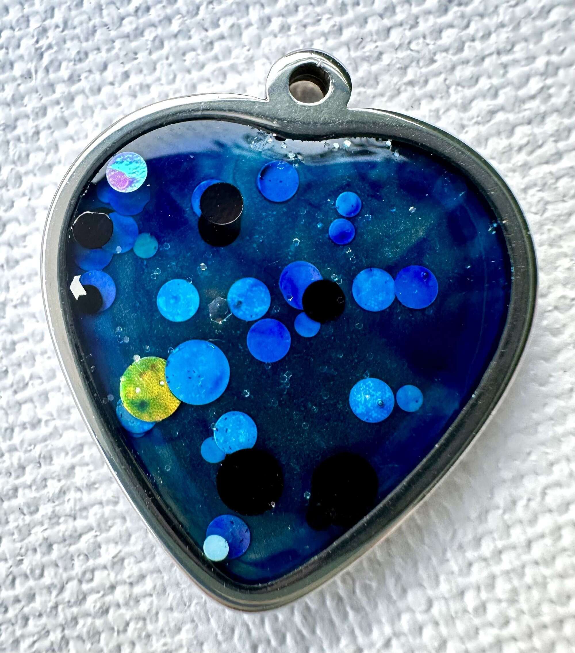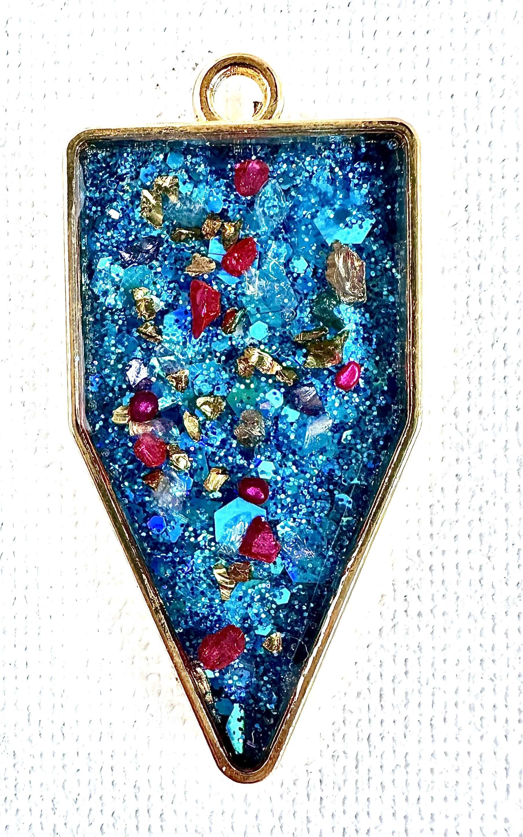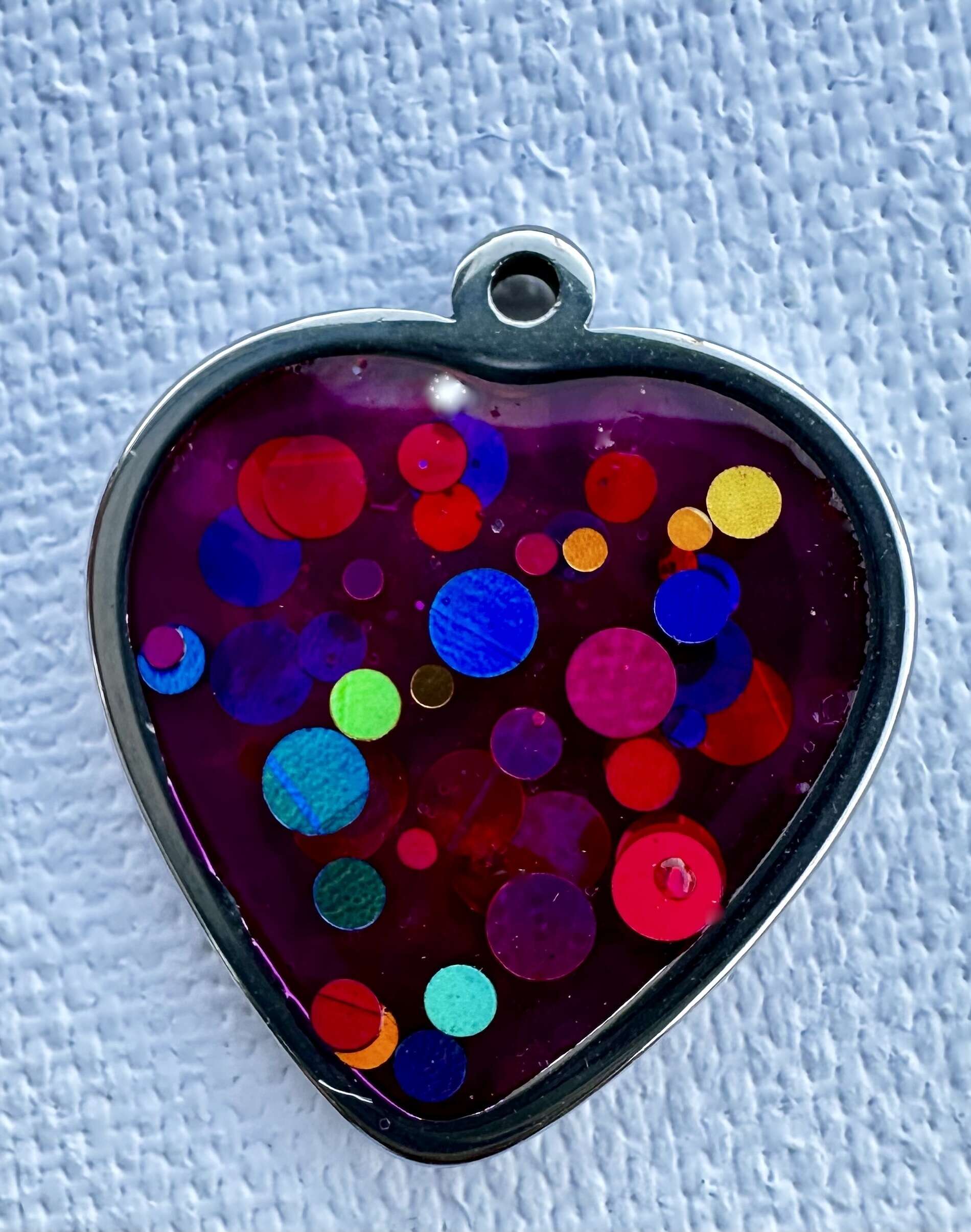 Ces créations sont en liens avec l'énergie féminine. Un grand choix de colliers avec chainettes en forme de coeur ou en simple maillon, sur support acier façon or 18 K et argent traité anti-allergène. Avec la résine, j'offre une multitude de couleurs en inclusion avec des cristaux de pierres et poudre de mica, ce qui rend la création unique en y mettant les mêmes intentions que dans mes toiles.