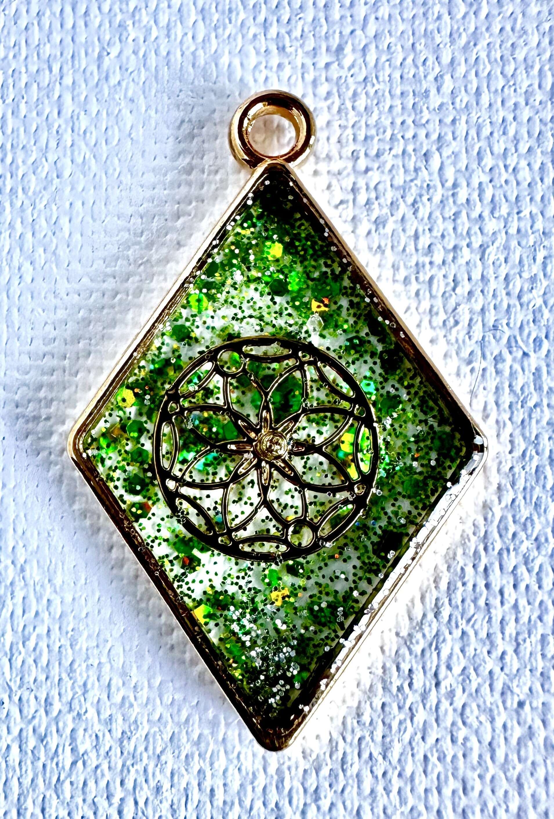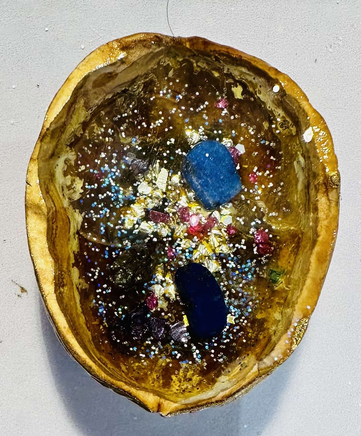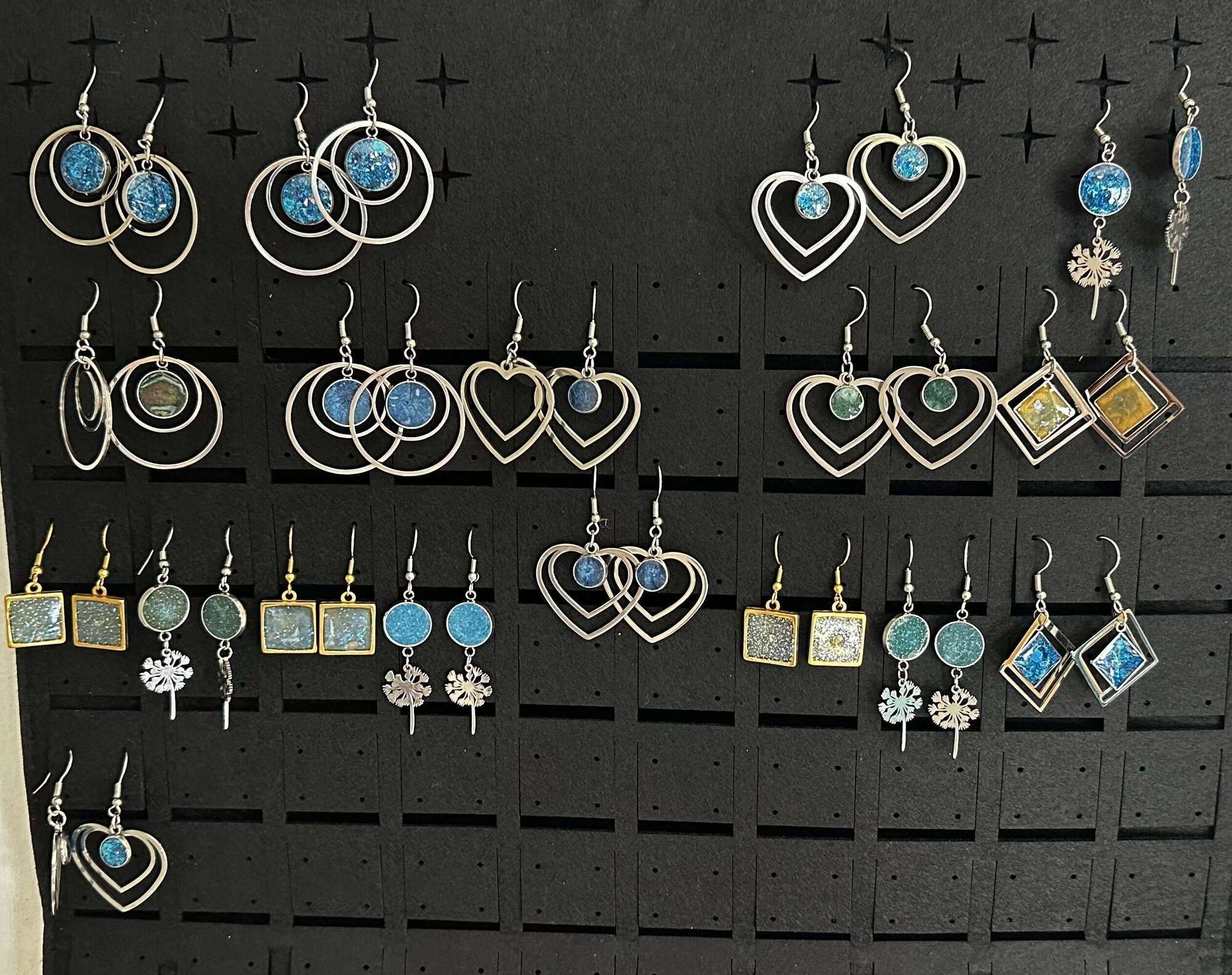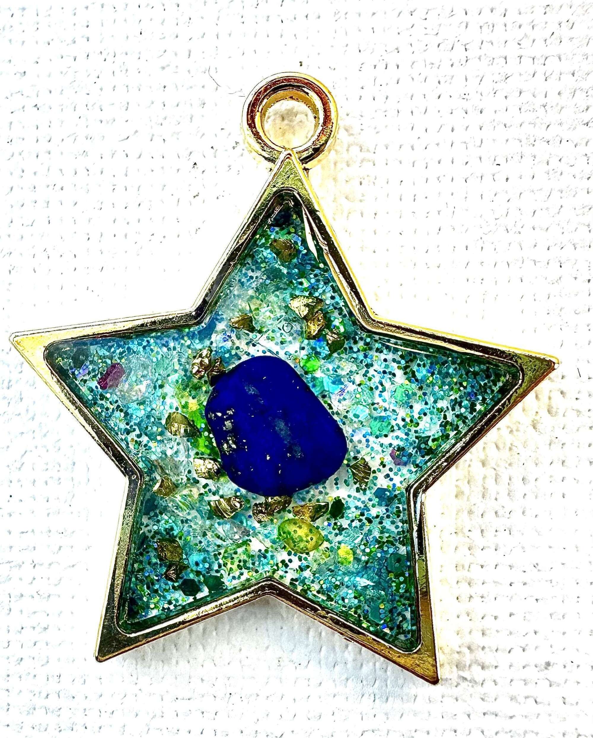 Ces créations sont en liens avec l'énergie féminine. Un grand choix de colliers avec chainettes en forme de coeur ou en simple maillon, sur support acier façon or 18 K et argent traité anti-allergène. Avec la résine, j'offre une multitude de couleurs en inclusion avec des cristaux de pierres et poudre de mica, ce qui rend la création unique en y mettant les mêmes intentions que dans mes toiles.