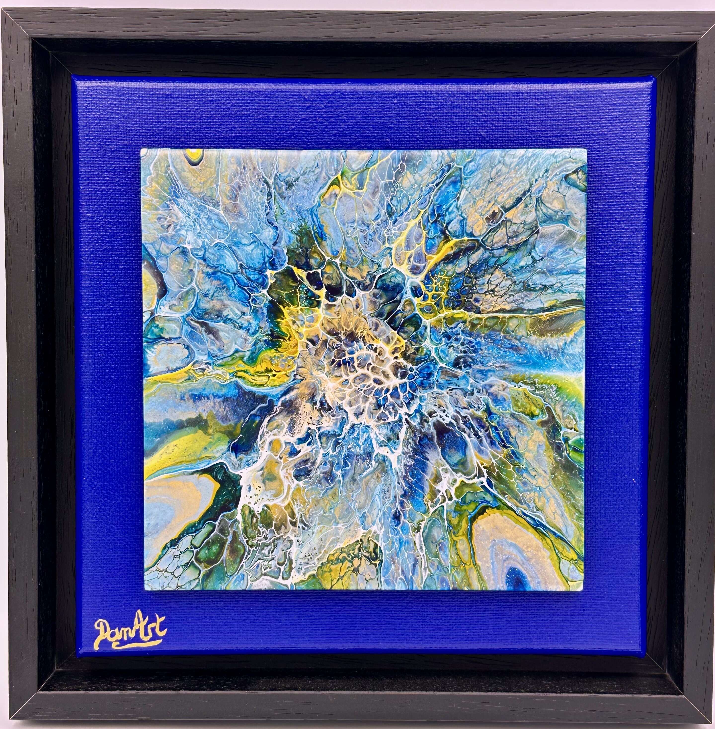 5 Tableaux en Techniques Bloom sur céramique 20 x 20 vernis dans cadre 25 x25 cm